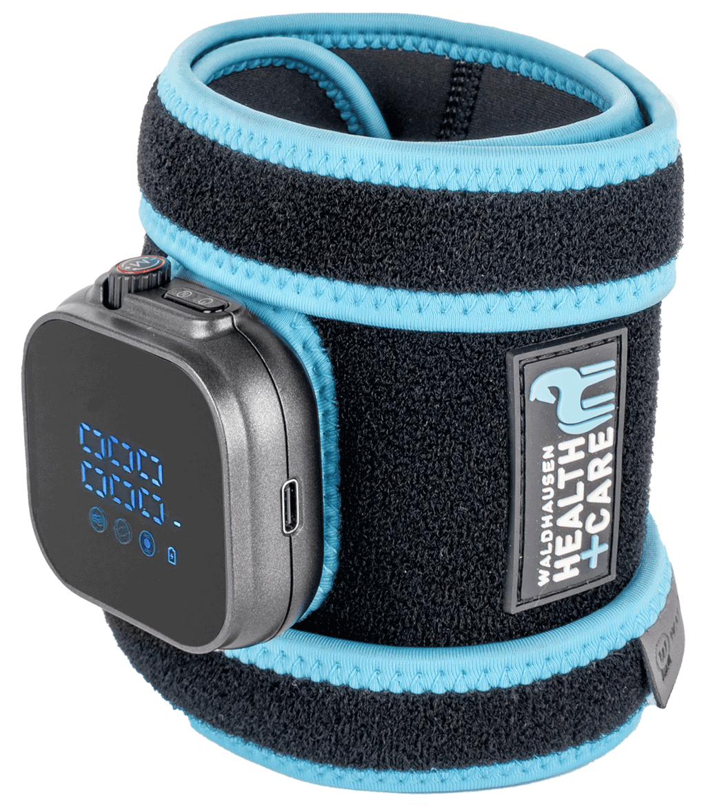 The Waldhausen Health + Care Infrared FlexPad is an innovative solution to promote muscle relaxation, blood circulation and regeneration. Targeted deep heat gently warms the horse"s muscles, relieves tension and stimulates the metabolism. The pad is particularly suitable for support before training, for relaxation after exercise, or for complementary therapy for muscular problems. The three functions can be controlled individually: Infrared light intensity: 3 levels Spectrum: 660 nm + 850 nm, irradiance level 1: 11 mW/cm² , Level 2: 18.5 mW/cm² , Level 3: 32 mW/cm², Temperature: 38 °C-48 °C ± 3 °C, Vibration: 3 levels: Level 1: light continuous vibration, Level 2: continuous vibration, Level 3: intervals. The two fastening straps allow the Infrared FlexPad to be used on the leg or neck — for a wide range of applications.
