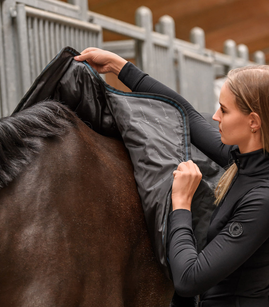 - In cold weather: To keep the muscles warm between seasons or in winter, e.g. for clipped horses.